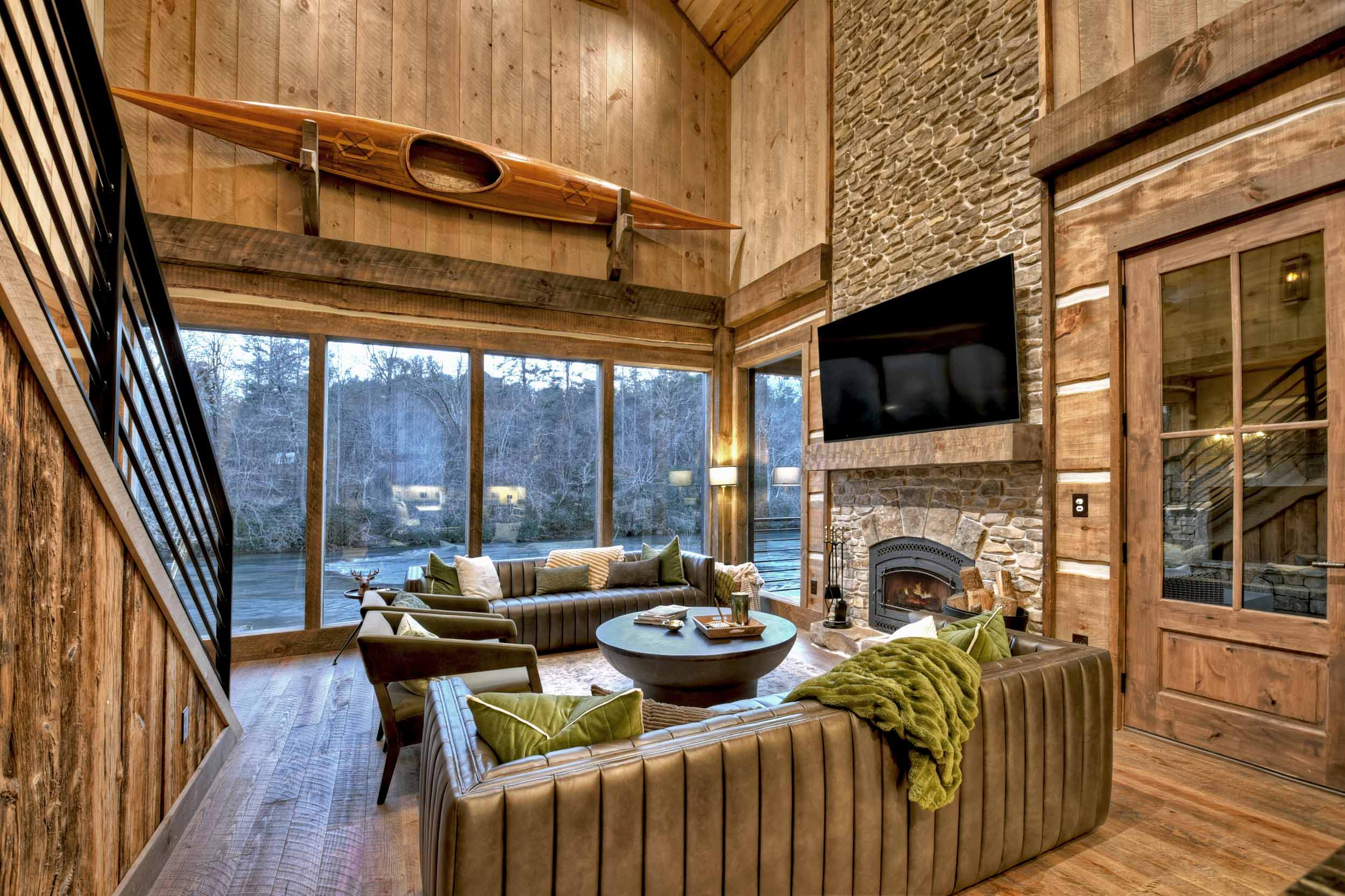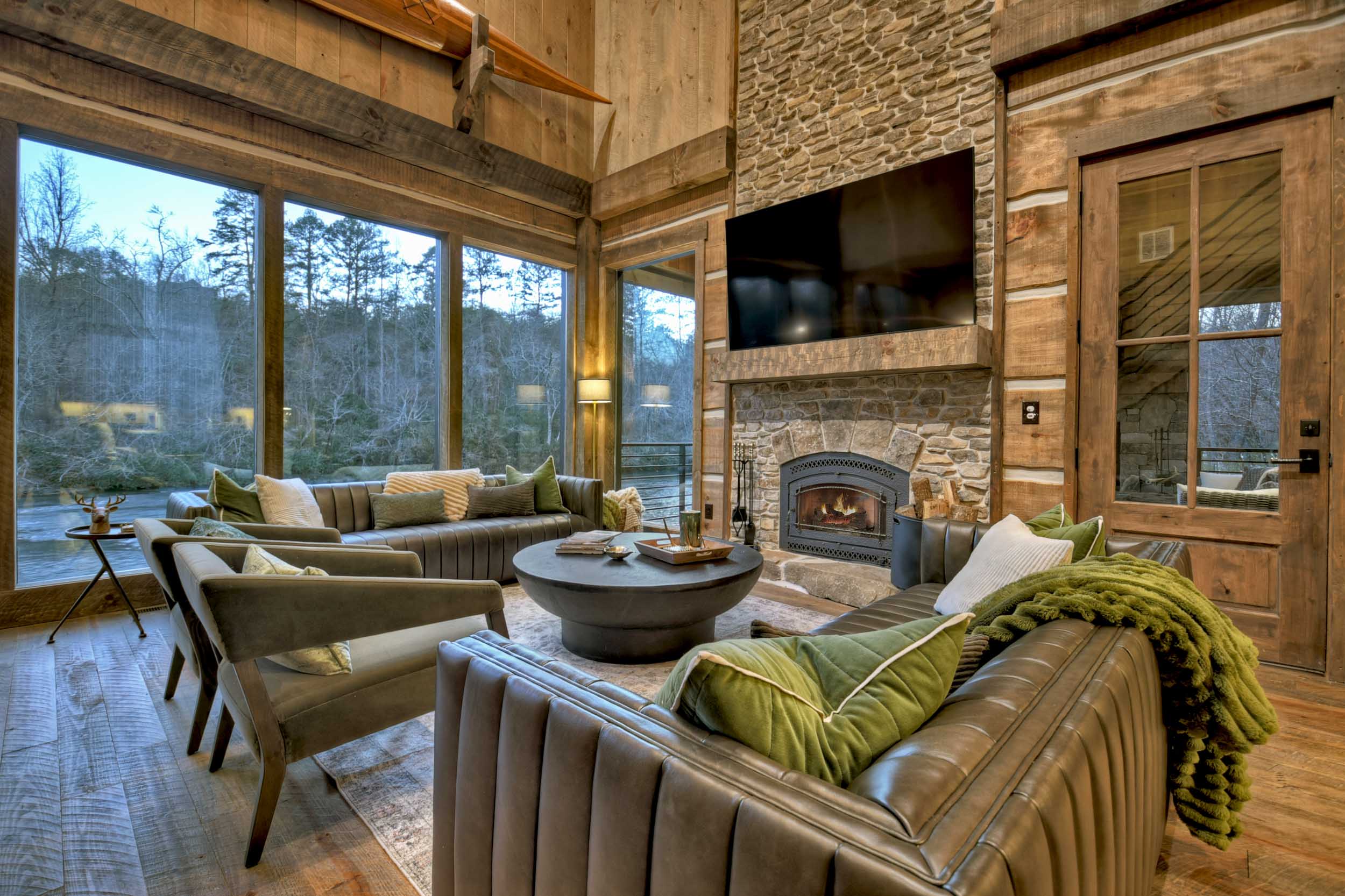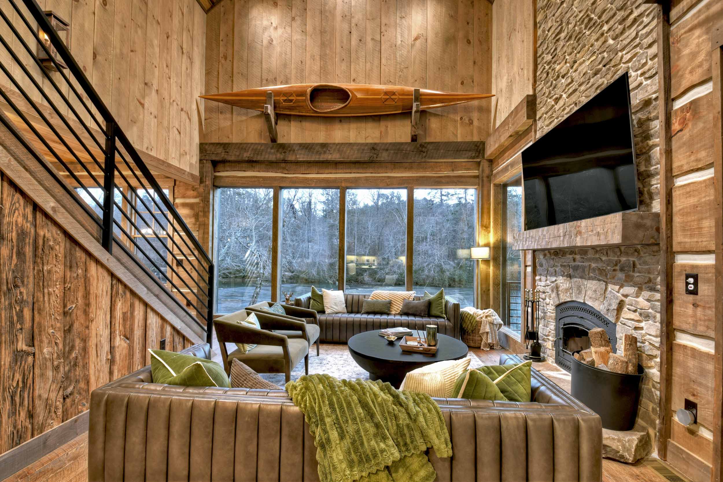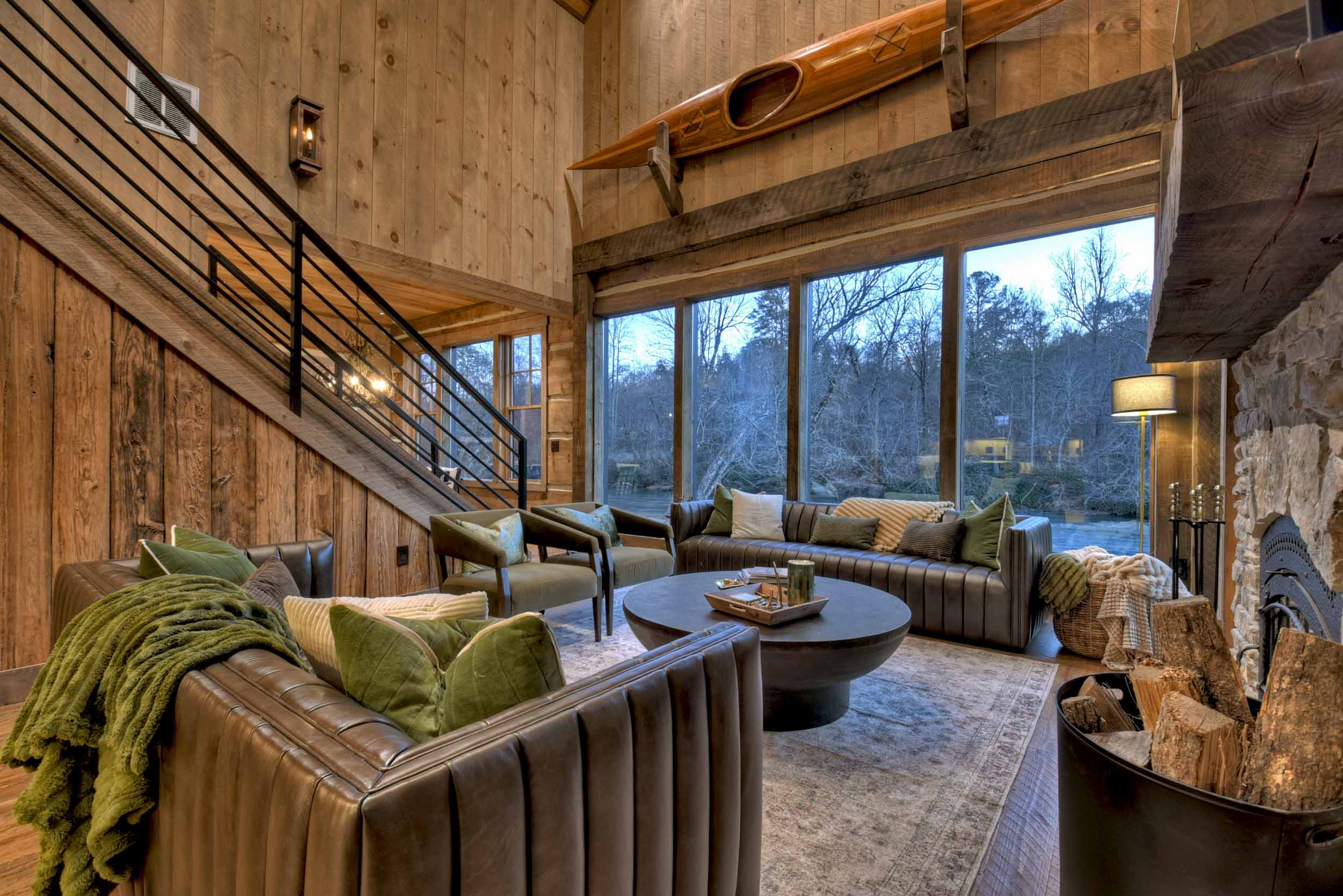 The Lodge Our rustic-modern upscale lodge comfortably accommodates up to 8 guests, featuring 4 bedrooms, 3 baths, spacious porches, and inviting firepits along the river’s edge. No Pets Allowed. Book Now