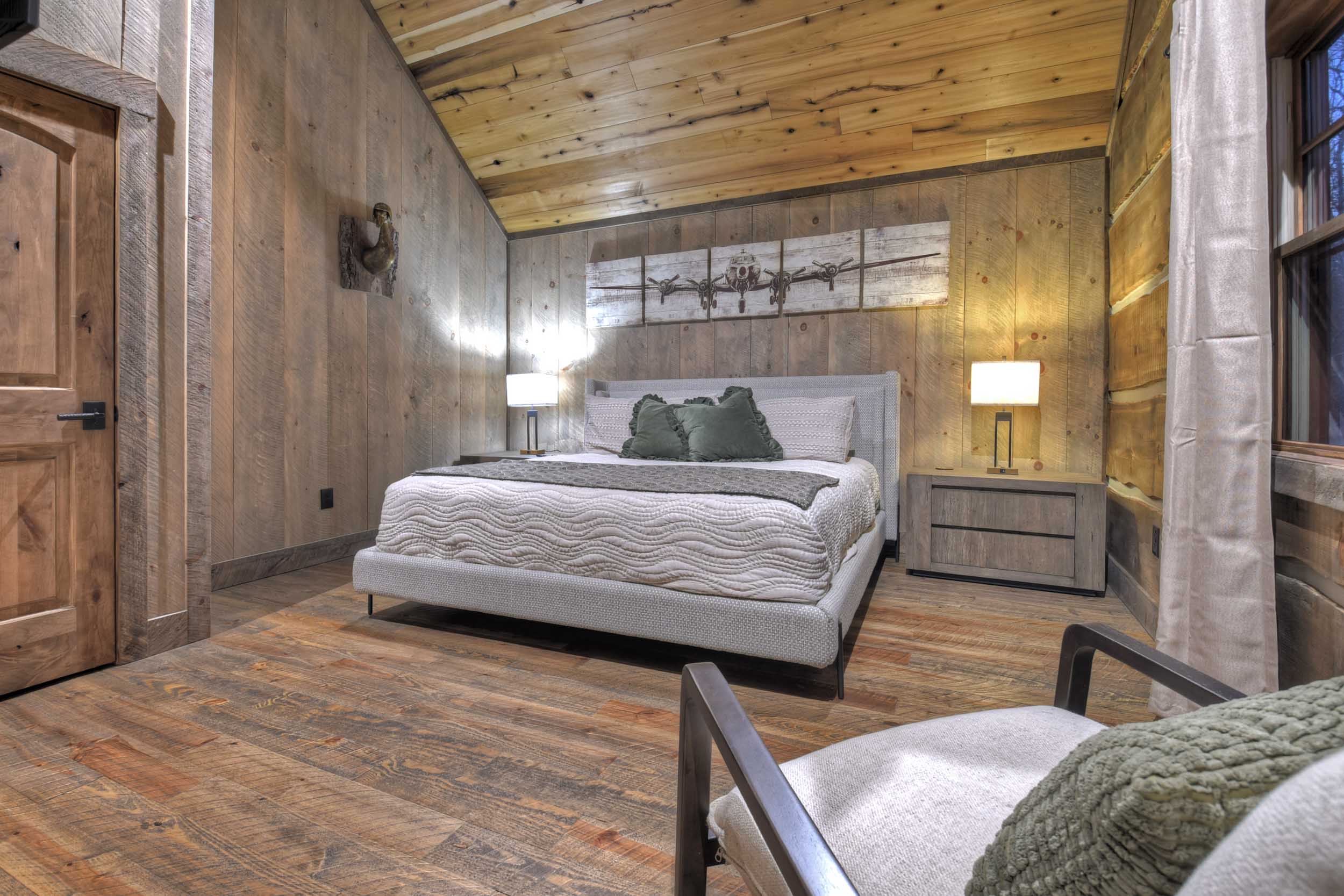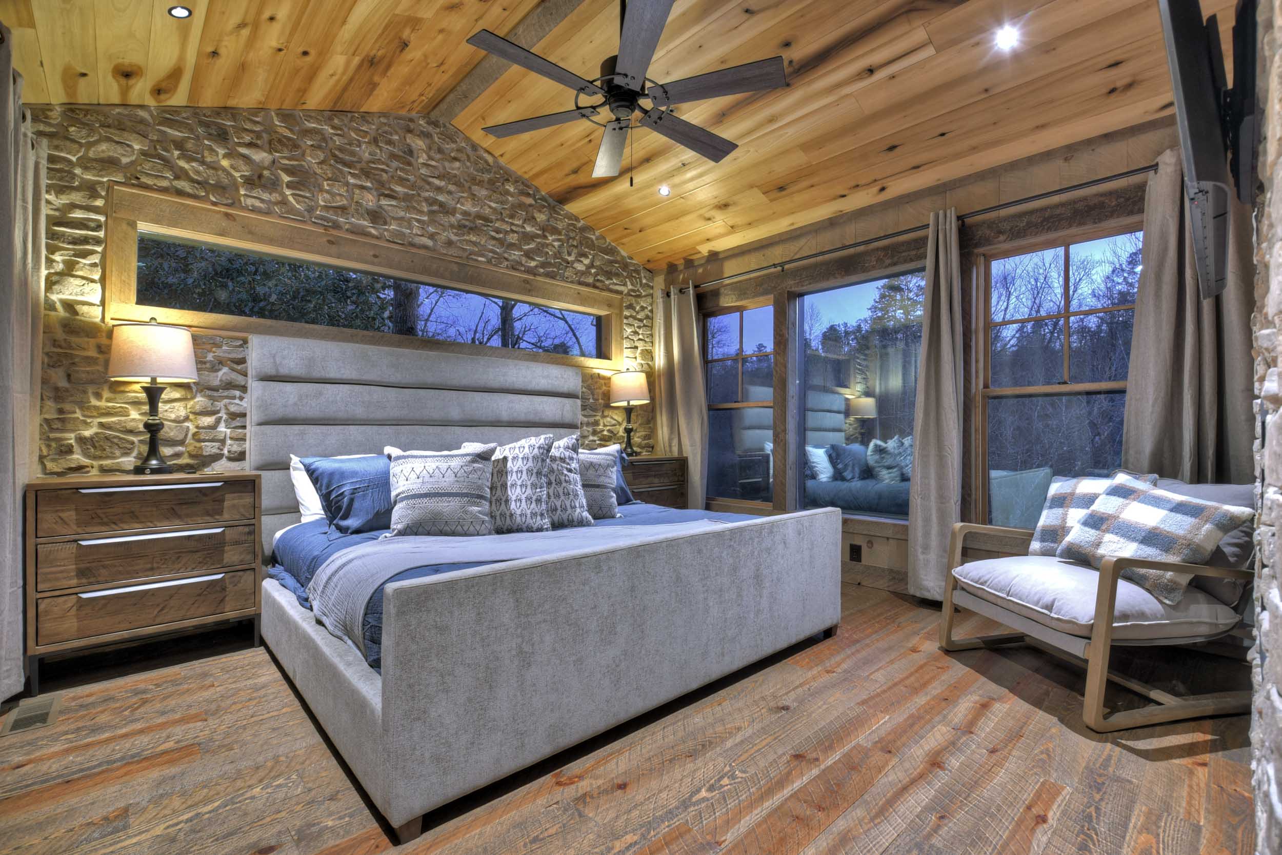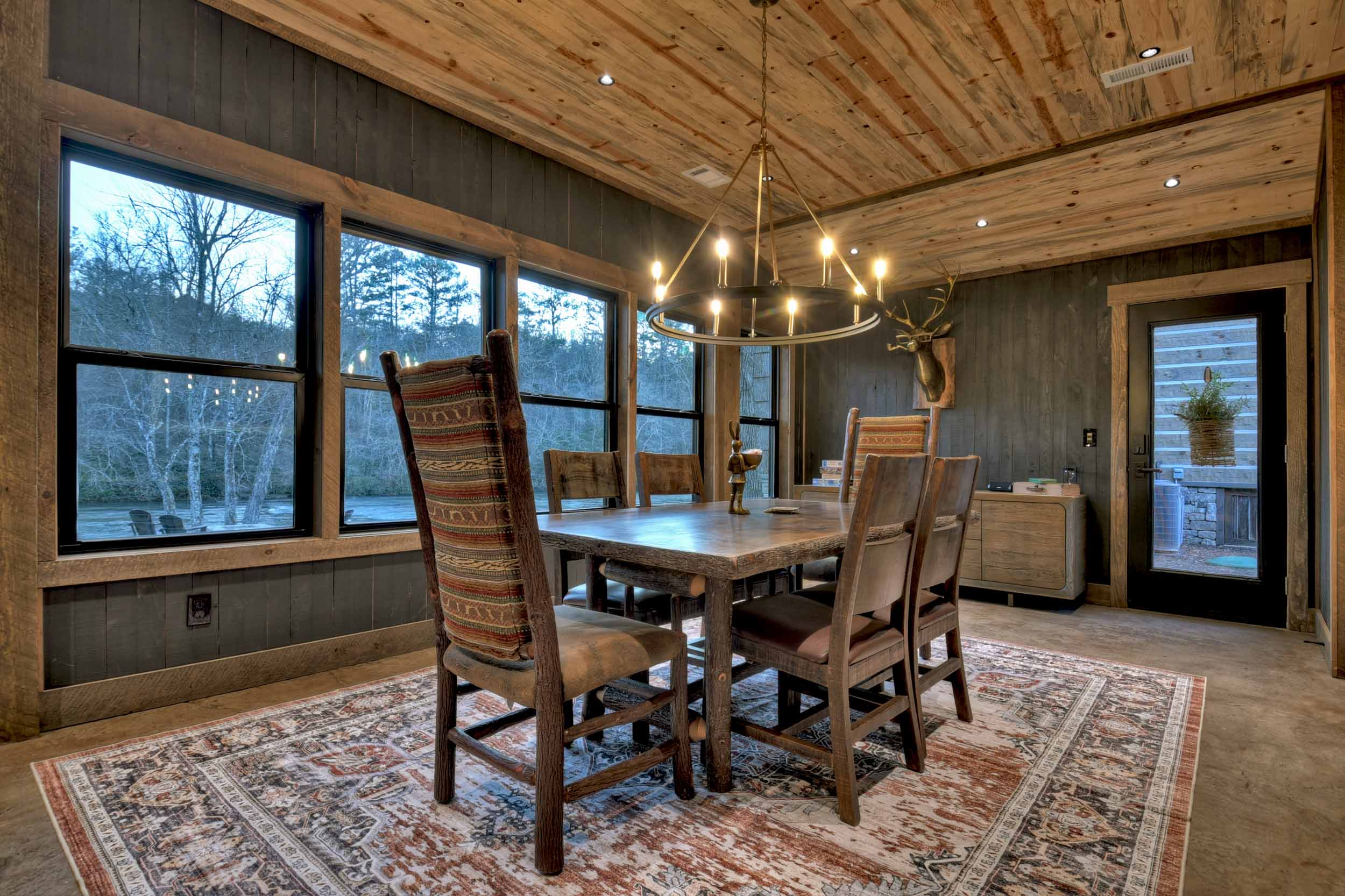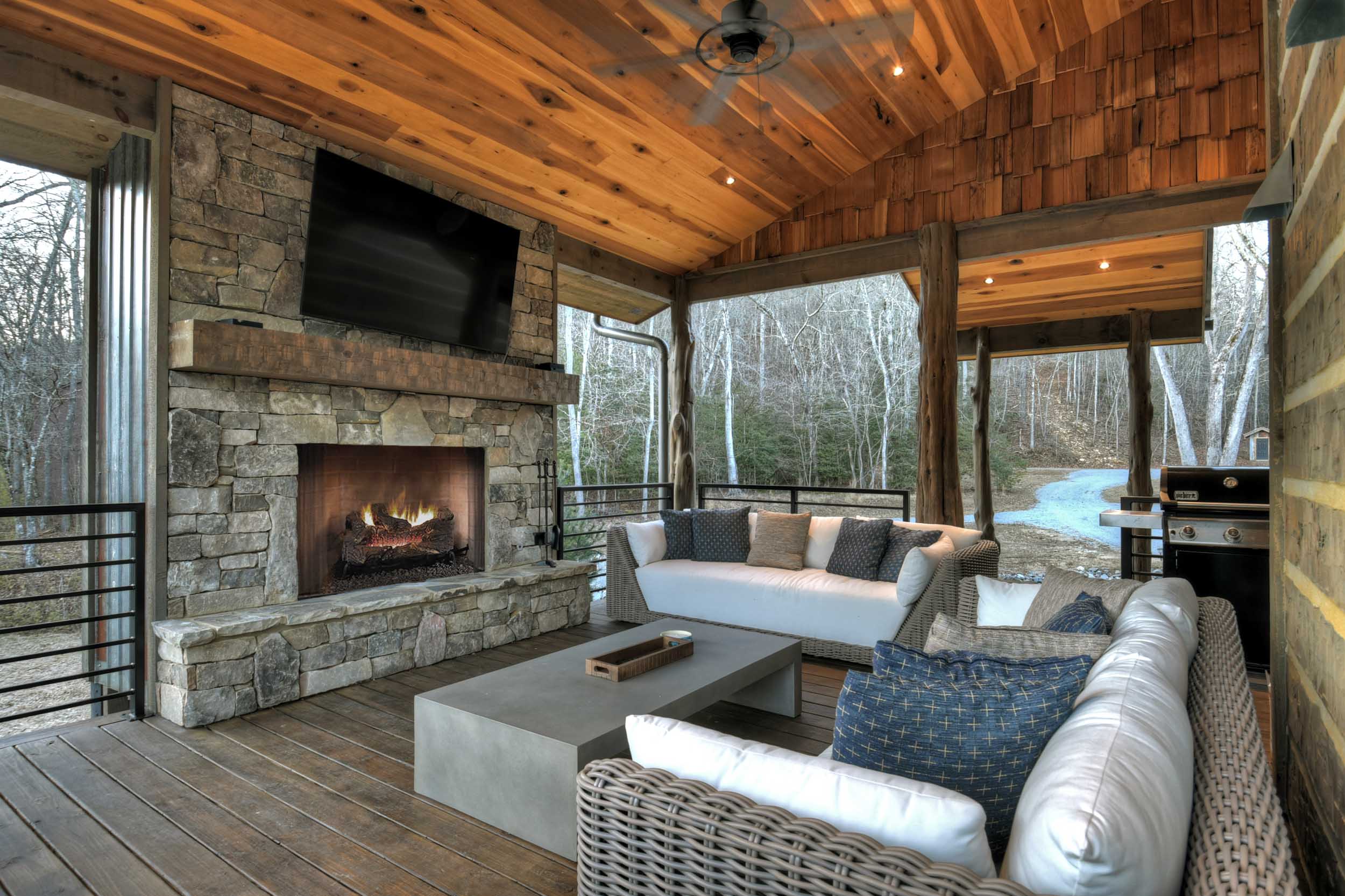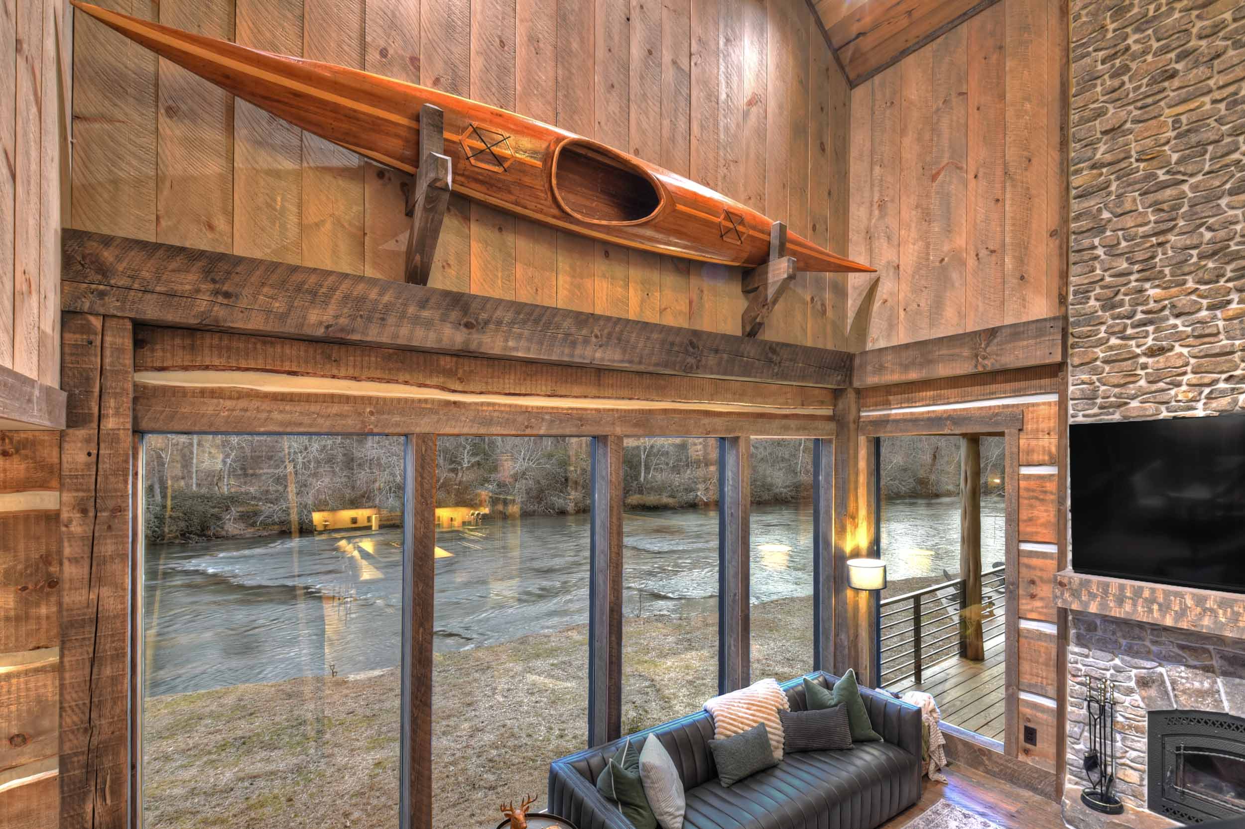 The Lodge Our rustic-modern upscale lodge comfortably accommodates up to 8 guests, featuring 4 bedrooms, 3 baths, spacious porches, and inviting firepits along the river’s edge. No Pets Allowed. Book Now
